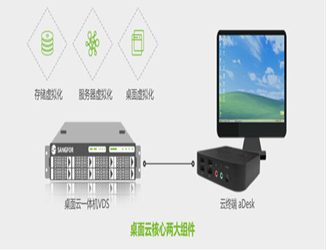 深信服aDesk桌面云方案,是基于融合架构的新型桌面模式,通过深度整合服务器虚拟化、桌面虚拟化及存储虚拟化,只需桌面云一体机和云终端两种设备,即可实现云平台的快速交付,为用户提供操作体验及软硬件兼容性媲美PC,更安全、更高效的云桌面。